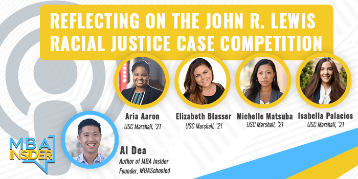 In this episode, we spoke to Coalition 4 Change, a team from USC Marshall who recently won the Inaugural John R. Lewis Racial Justice Case Competition hosted by Emory University. During this conversation, we spoke about the team’s desire to get involved in the case competition, the process of coming up with their ideas, and their reflections on participating and winning the case competition. They also spoke about their aspirations and hopes for how they and their fellow MBA students can take more active ownership in promoting racial justice, and how they’re doing just that by planning the USC FORWARD Summit.